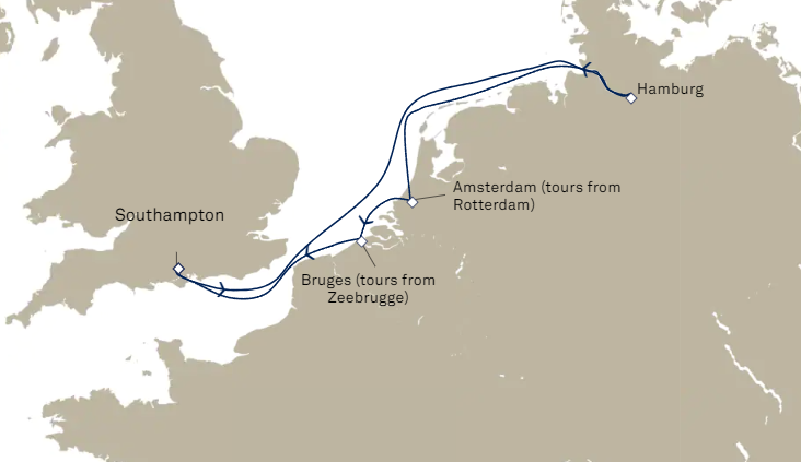- Les excursions facultatives disponibles à Cherbourg (pour les passagers ayant embarqués au Havre le 8 juin) et à Southampton