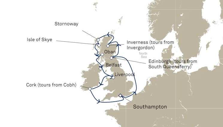 - Les excursions facultatives disponibles à Cherbourg (pour les passagers ayant embarqués au Havre le 8 juin) et à Southampton
