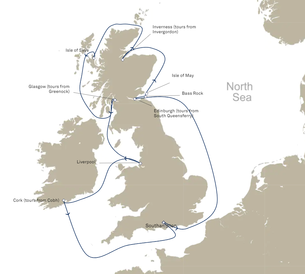 - Les excursions facultatives disponibles à Cherbourg (pour les passagers ayant embarqués au Havre le 8 juin) et à Southampton