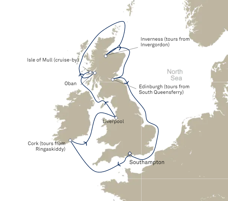 - Les excursions facultatives disponibles à Cherbourg (pour les passagers ayant embarqués au Havre le 8 juin) et à Southampton