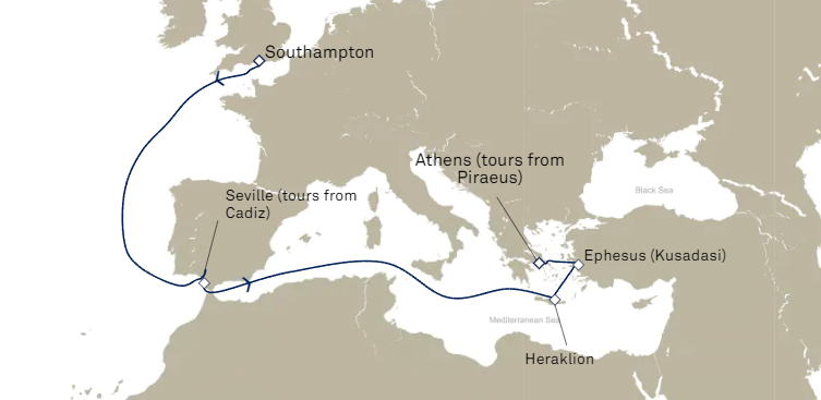 - Les excursions facultatives disponibles à Cherbourg (pour les passagers ayant embarqués au Havre le 8 juin) et à Southampton