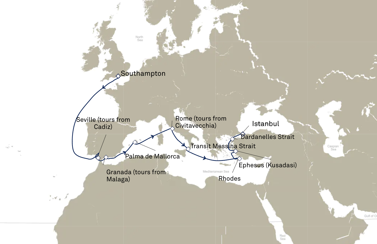 - Les excursions facultatives disponibles à Cherbourg (pour les passagers ayant embarqués au Havre le 8 juin) et à Southampton
