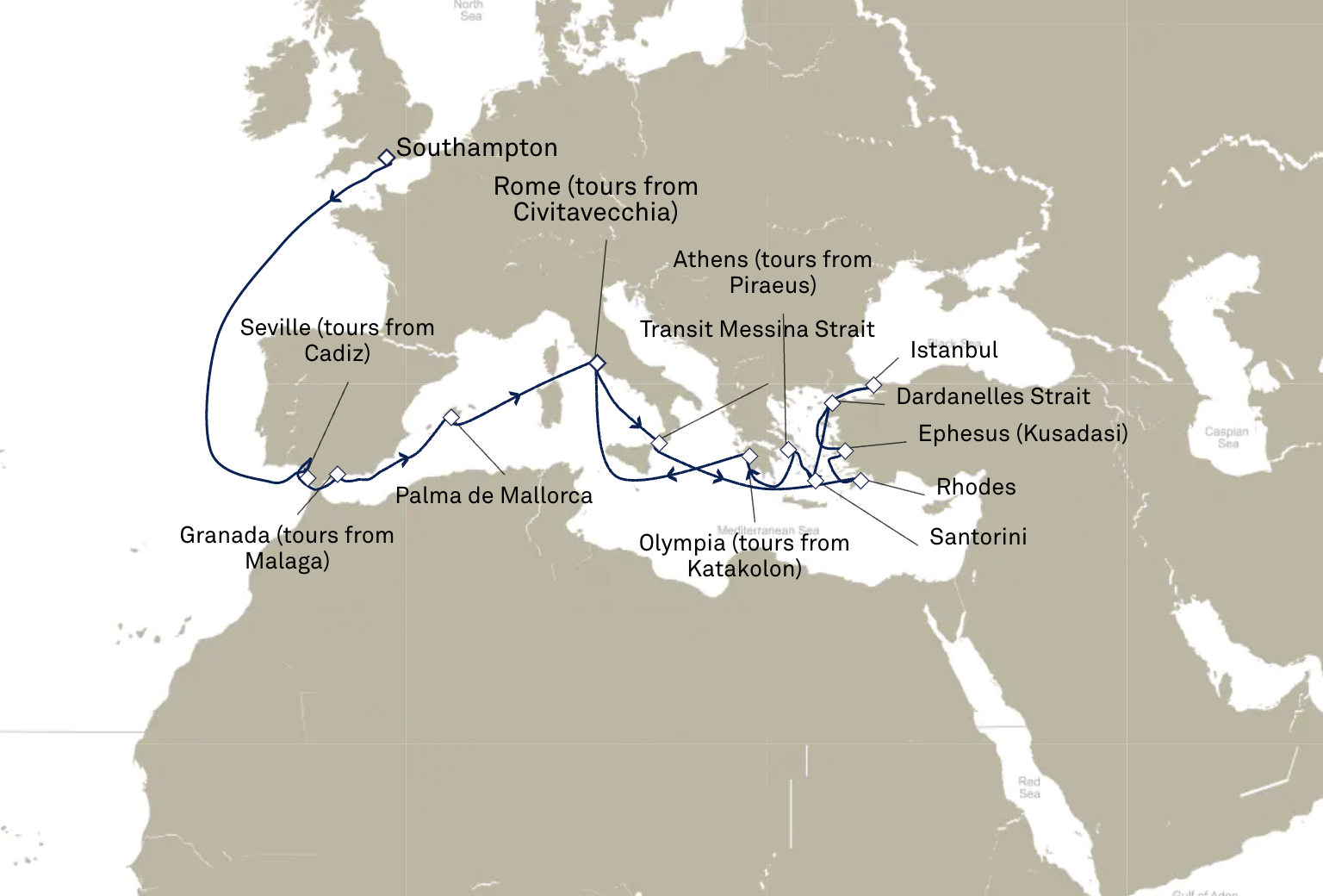 - Les excursions facultatives disponibles à Cherbourg (pour les passagers ayant embarqués au Havre le 8 juin) et à Southampton