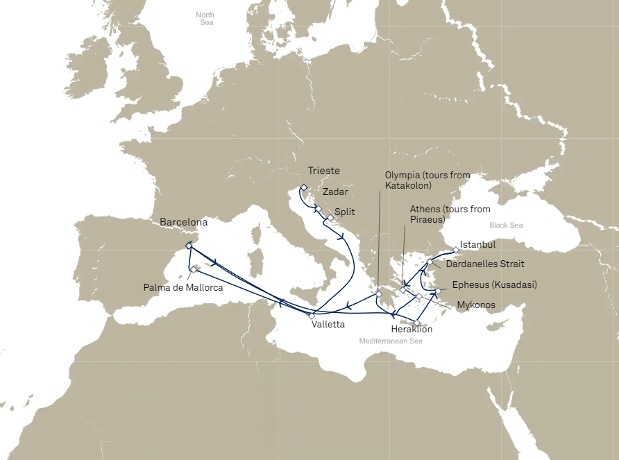 Les hôtes en catégorie Britannia bénéficient gracieusement du petit-déjeuner en cabine jusqu’à 10h. Au-delà, des frais peuvent s’appliquer, notamment pour certains plats signature.