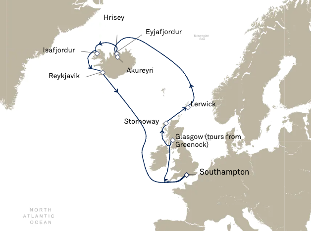 -          Les excursions facultatives disponibles à Cherbourg (pour les passagers ayant embarqués au Havre le 8 juin) et à Southampton