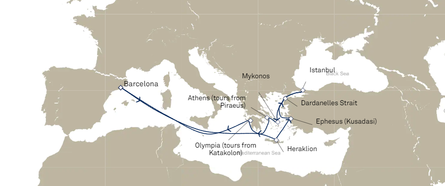 Les hôtes en catégorie Britannia bénéficient gracieusement du petit-déjeuner en cabine jusqu’à 10h. Au-delà, des frais peuvent s’appliquer, notamment pour certains plats signature.