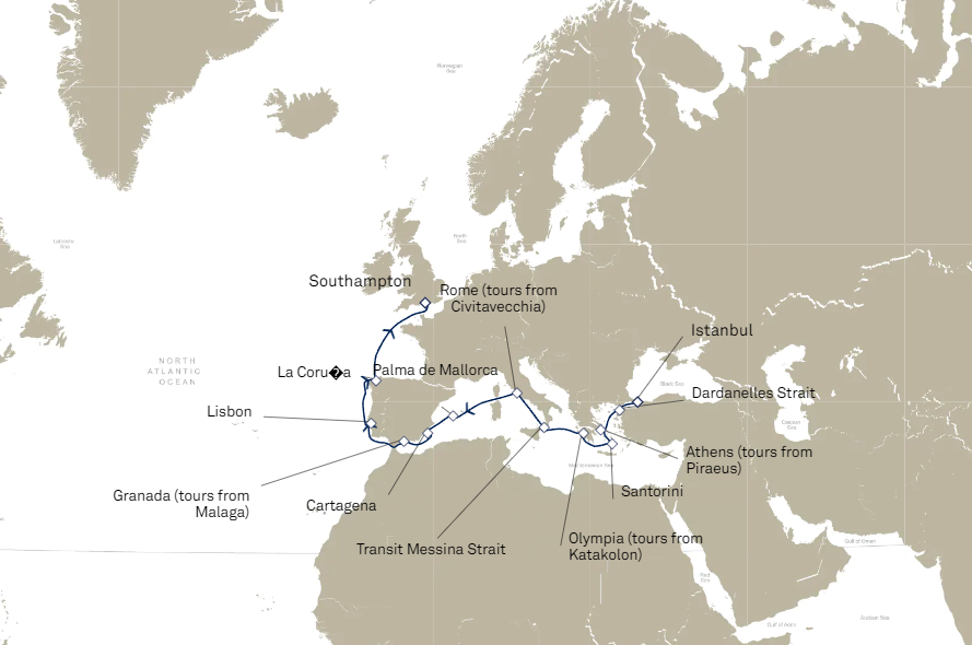 - Les excursions facultatives disponibles à Cherbourg (pour les passagers ayant embarqués au Havre le 8 juin) et à Southampton