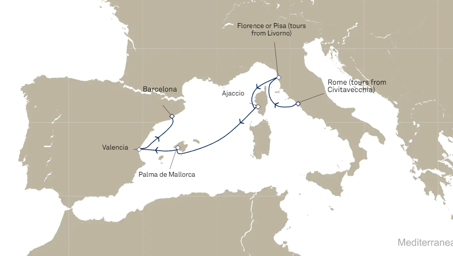 Départ: Rome (Civitavecchia) - Italie / Arrivée : Barcelone - Espagne