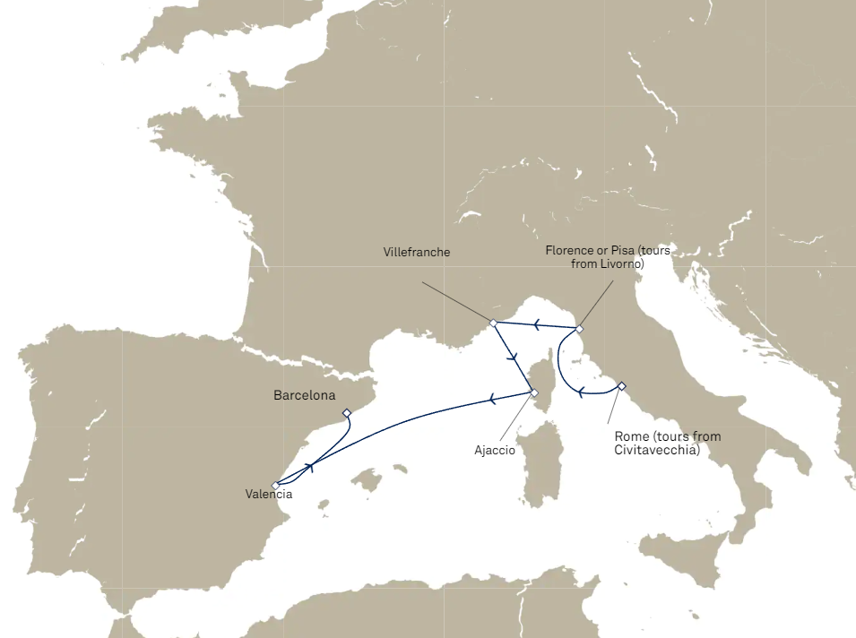 - Les excursions facultatives disponibles à Cherbourg (pour les passagers ayant embarqués au Havre le 8 juin) et à Southampton