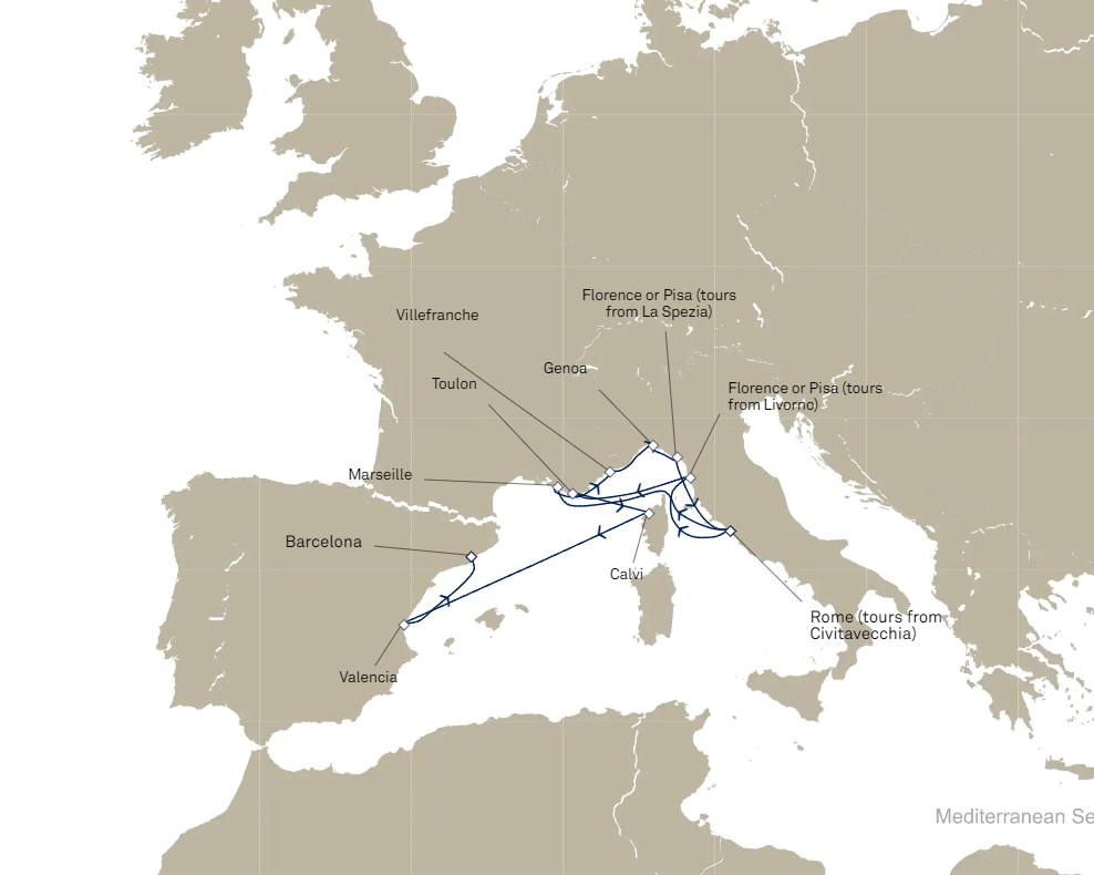 - Les excursions facultatives disponibles à Cherbourg (pour les passagers ayant embarqués au Havre le 8 juin) et à Southampton
