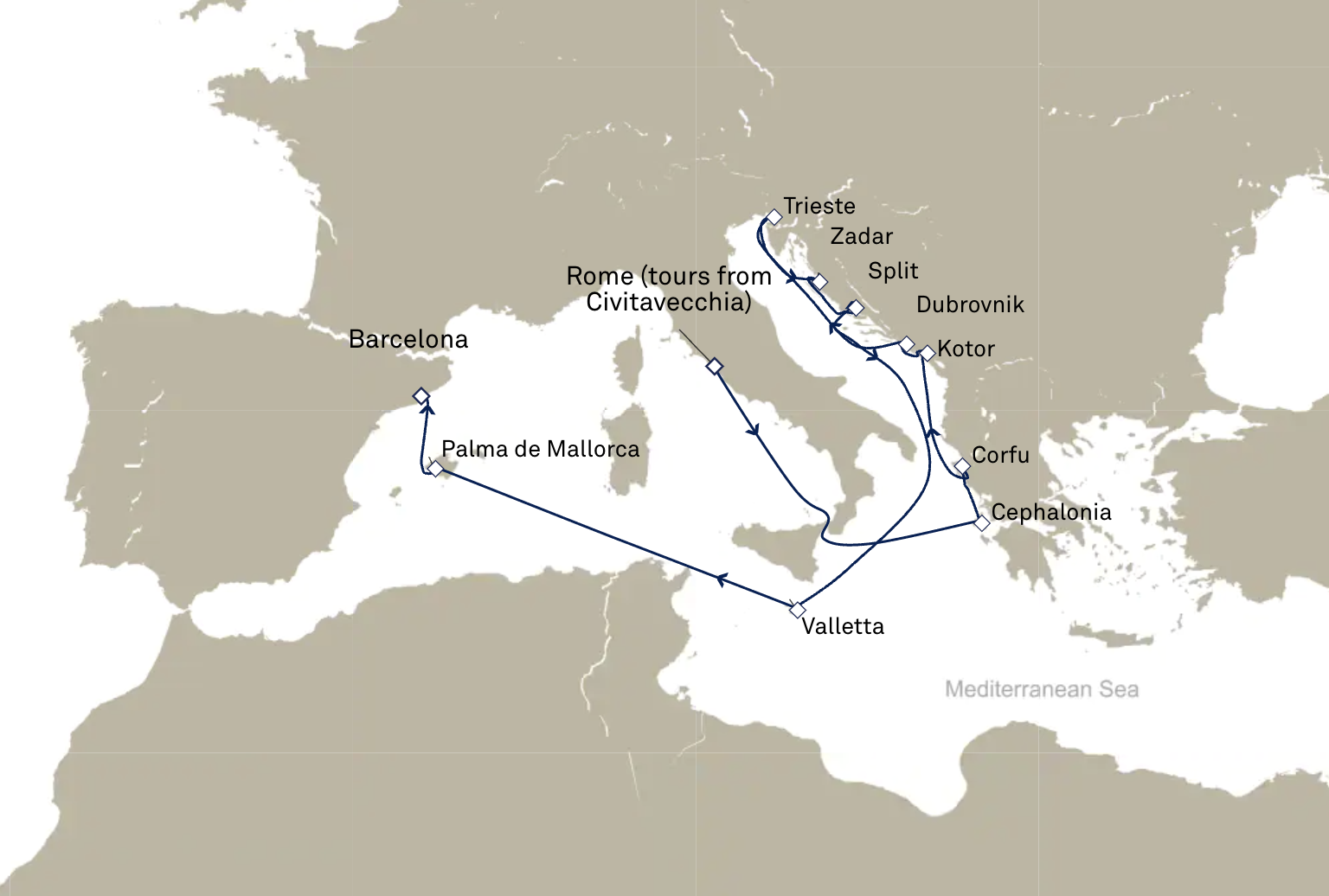 Départ : Rome (Civitavecchia) - Italie / Arrivée : Barcelone - Espagne