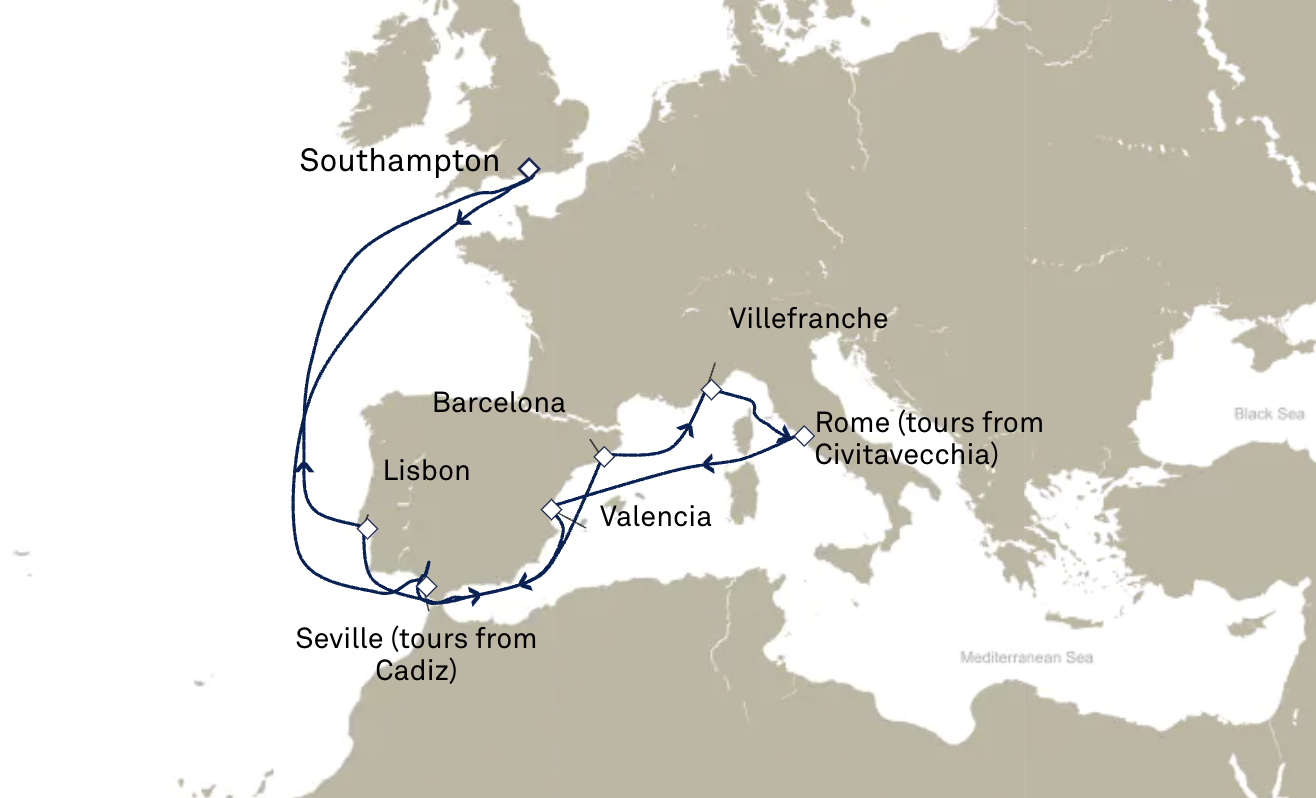 - Les excursions facultatives disponibles à Cherbourg (pour les passagers ayant embarqués au Havre le 8 juin) et à Southampton