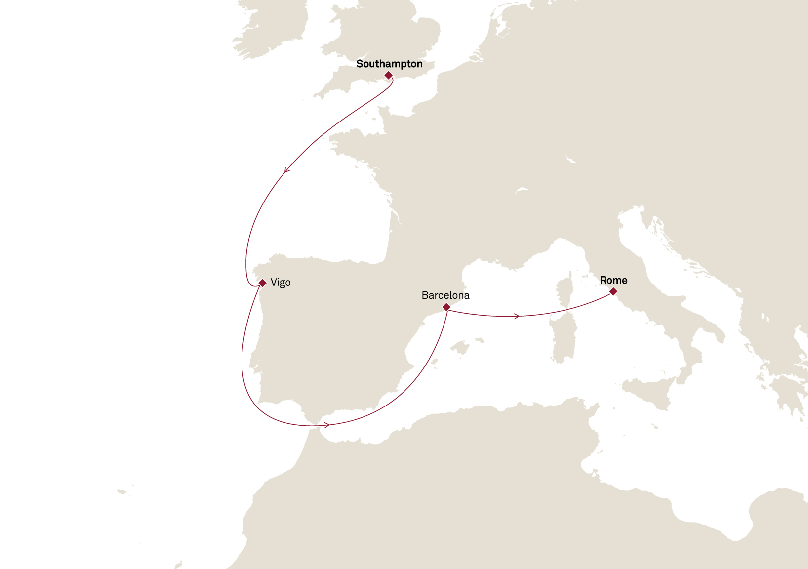 - Les excursions facultatives disponibles à Cherbourg (pour les passagers ayant embarqués au Havre le 8 juin) et à Southampton
