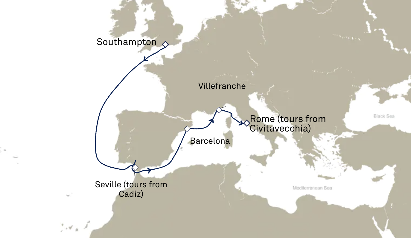 La Méditerranée, de Southampton à Rome (Civitavecchia)