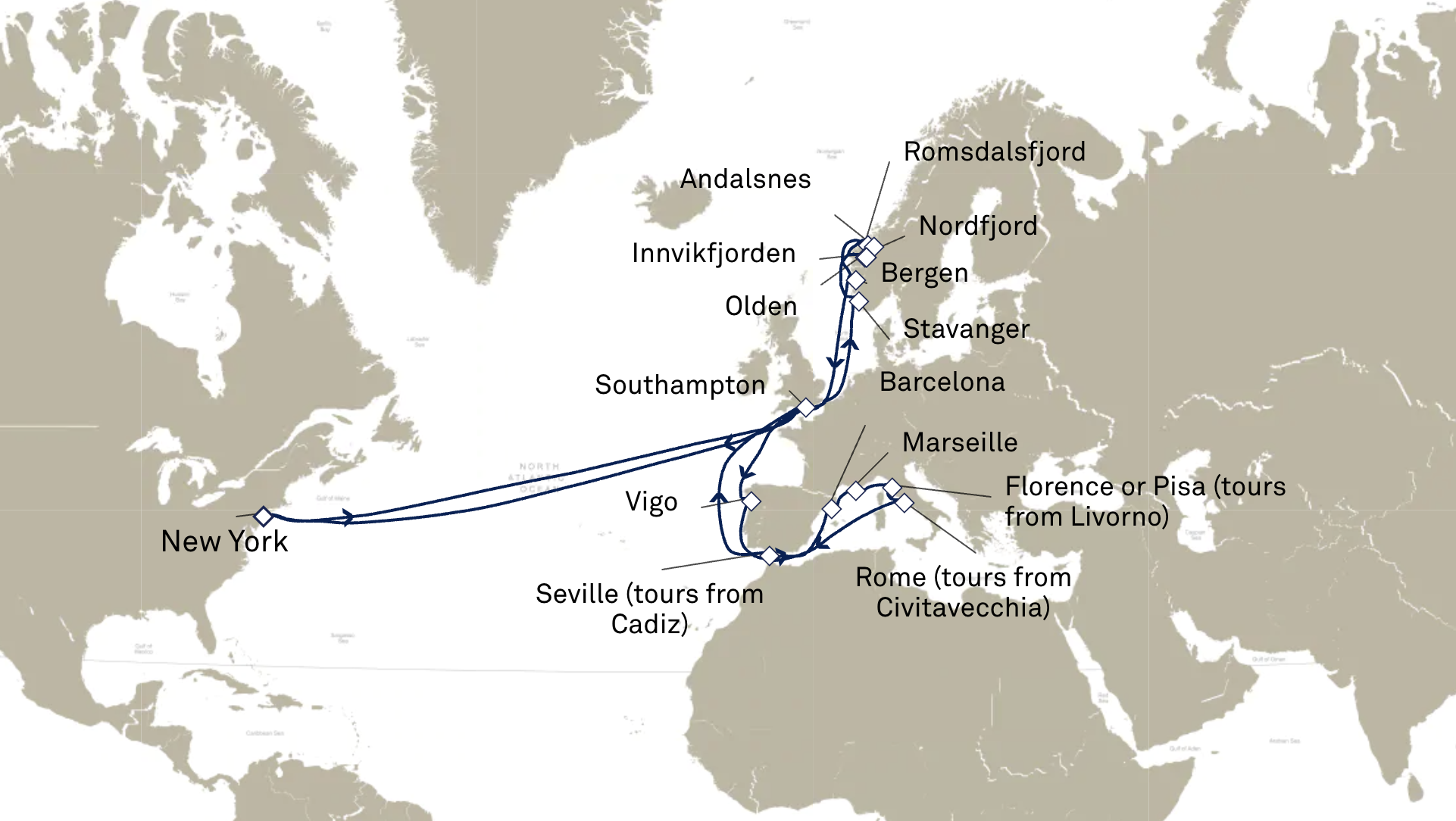 - Les excursions facultatives disponibles à Cherbourg (pour les passagers ayant embarqués au Havre le 8 juin) et à Southampton