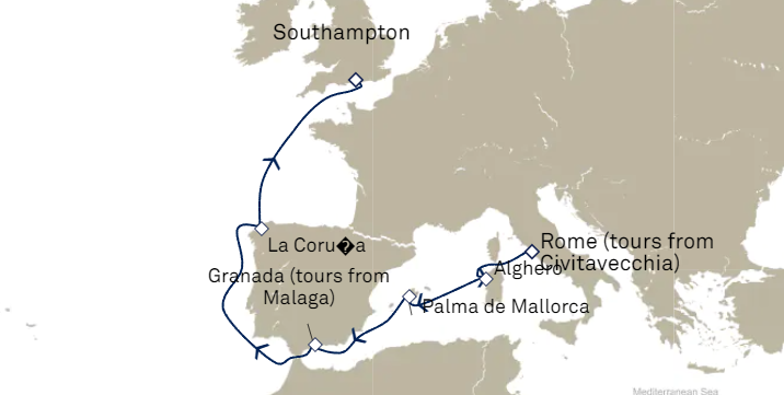 - Les excursions facultatives disponibles à Cherbourg (pour les passagers ayant embarqués au Havre le 8 juin) et à Southampton