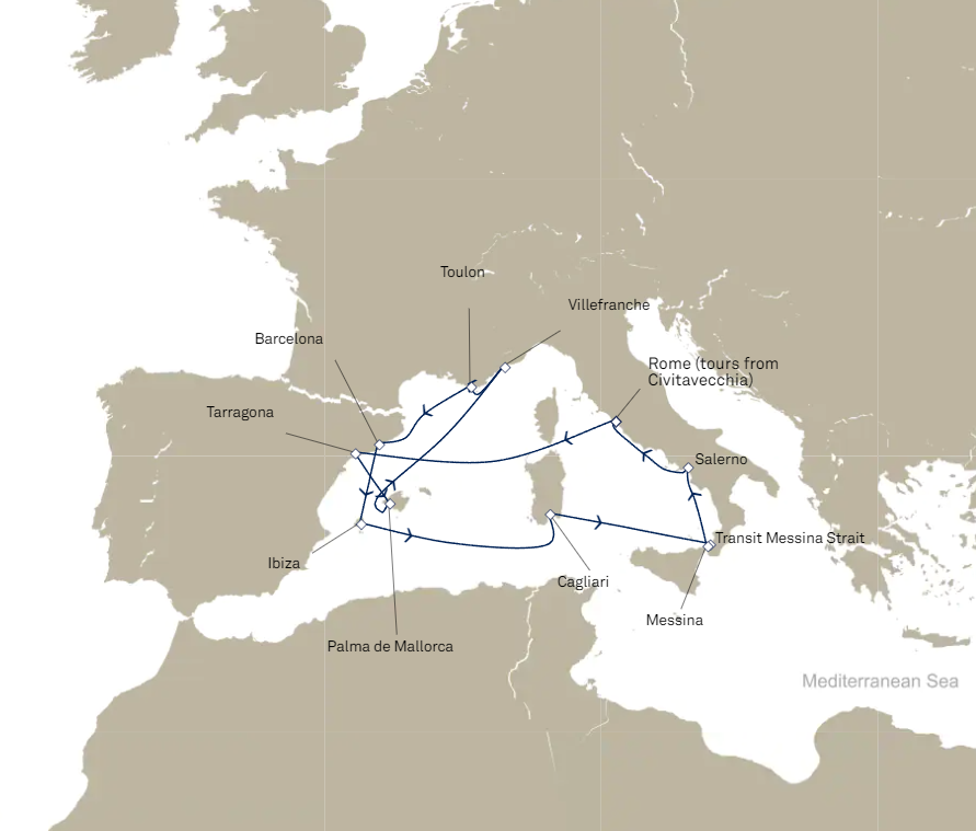 - Les excursions facultatives disponibles à Cherbourg (pour les passagers ayant embarqués au Havre le 8 juin) et à Southampton