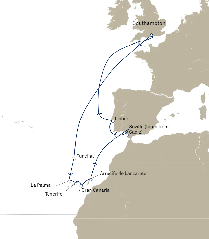 - Les excursions facultatives disponibles à Cherbourg (pour les passagers ayant embarqués au Havre le 8 juin) et à Southampton