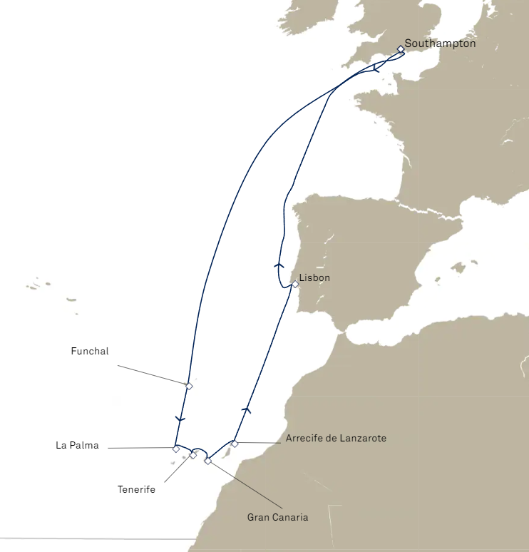- Les excursions facultatives disponibles à Cherbourg (pour les passagers ayant embarqués au Havre le 8 juin) et à Southampton