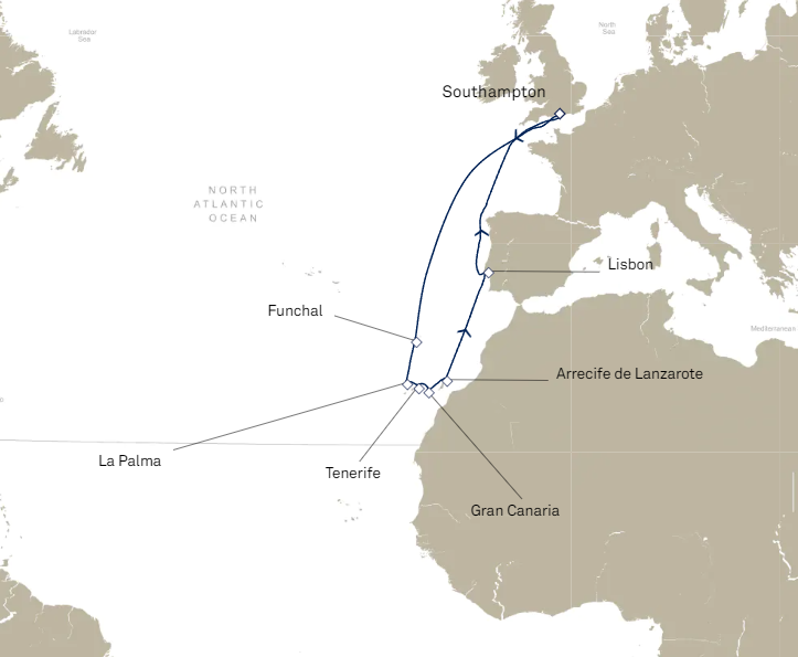 - Les excursions facultatives disponibles à Cherbourg (pour les passagers ayant embarqués au Havre le 8 juin) et à Southampton