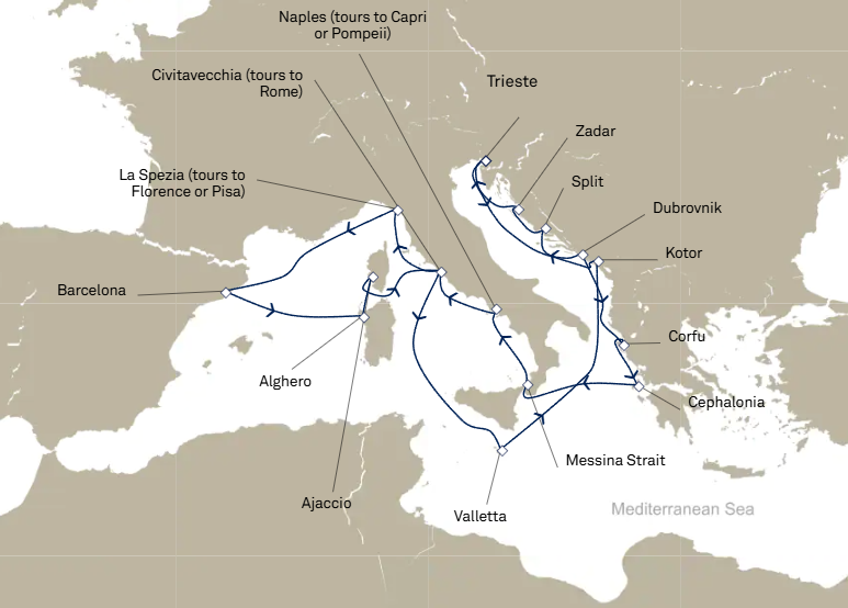- Les excursions facultatives disponibles à Cherbourg (pour les passagers ayant embarqués au Havre le 8 juin) et à Southampton