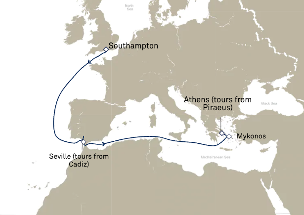 -          Les excursions facultatives disponibles à Cherbourg (pour les passagers ayant embarqués au Havre le 8 juin) et à Southampton