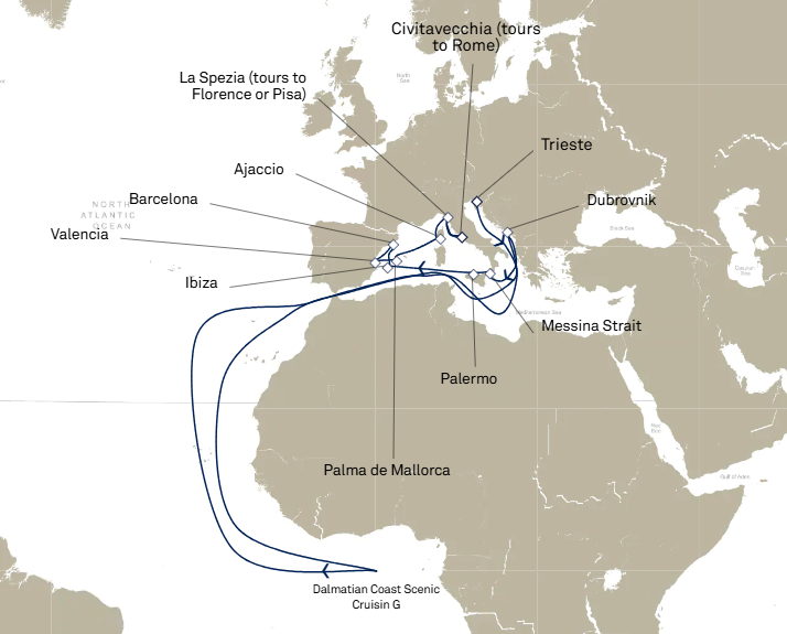 - Les excursions facultatives disponibles à Cherbourg (pour les passagers ayant embarqués au Havre le 8 juin) et à Southampton