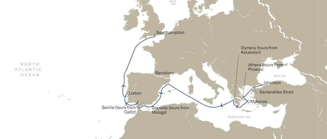 - Les excursions facultatives disponibles à Cherbourg (pour les passagers ayant embarqués au Havre le 8 juin) et à Southampton