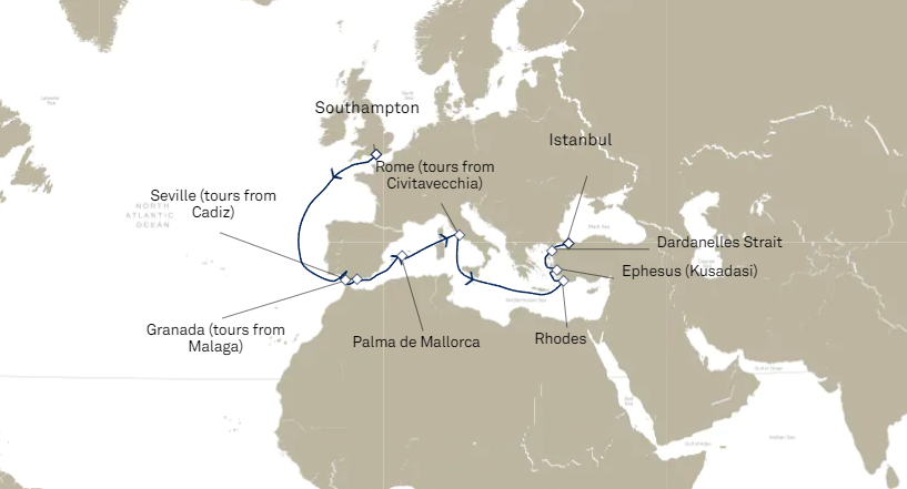 - Les excursions facultatives disponibles à Cherbourg (pour les passagers ayant embarqués au Havre le 8 juin) et à Southampton
