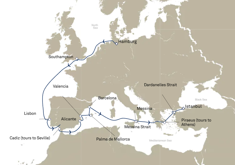 - Les excursions facultatives disponibles à Cherbourg (pour les passagers ayant embarqués au Havre le 8 juin) et à Southampton