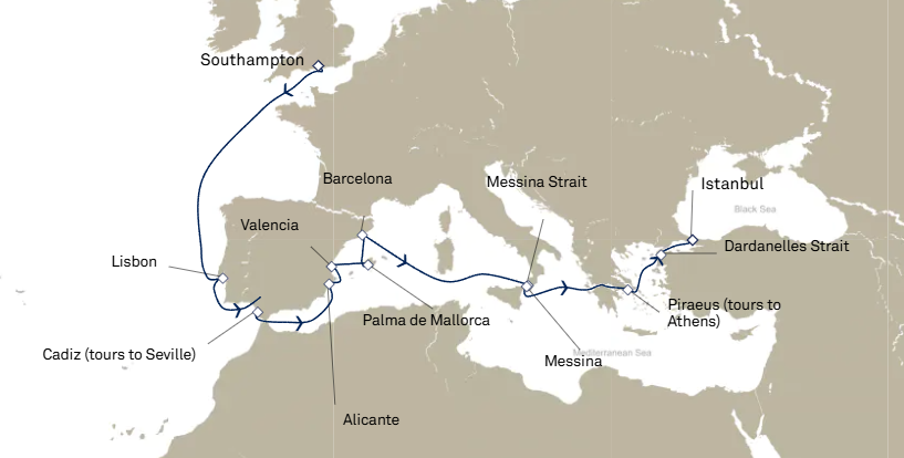 - Les excursions facultatives disponibles à Cherbourg (pour les passagers ayant embarqués au Havre le 8 juin) et à Southampton
