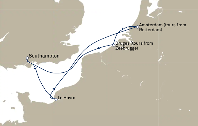 - Les excursions facultatives disponibles à Cherbourg (pour les passagers ayant embarqués au Havre le 8 juin) et à Southampton
