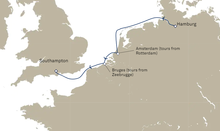 - Les excursions facultatives disponibles à Cherbourg (pour les passagers ayant embarqués au Havre le 8 juin) et à Southampton