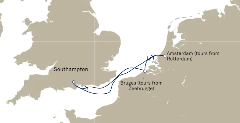 - Les excursions facultatives disponibles à Cherbourg (pour les passagers ayant embarqués au Havre le 8 juin) et à Southampton