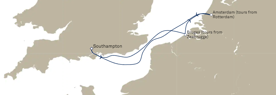 - Les excursions facultatives disponibles à Cherbourg (pour les passagers ayant embarqués au Havre le 8 juin) et à Southampton