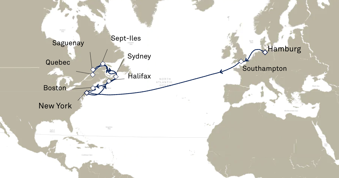 Transatlantique vers la Nouvelle-Angleterre et Canada, à partir de Hambourg