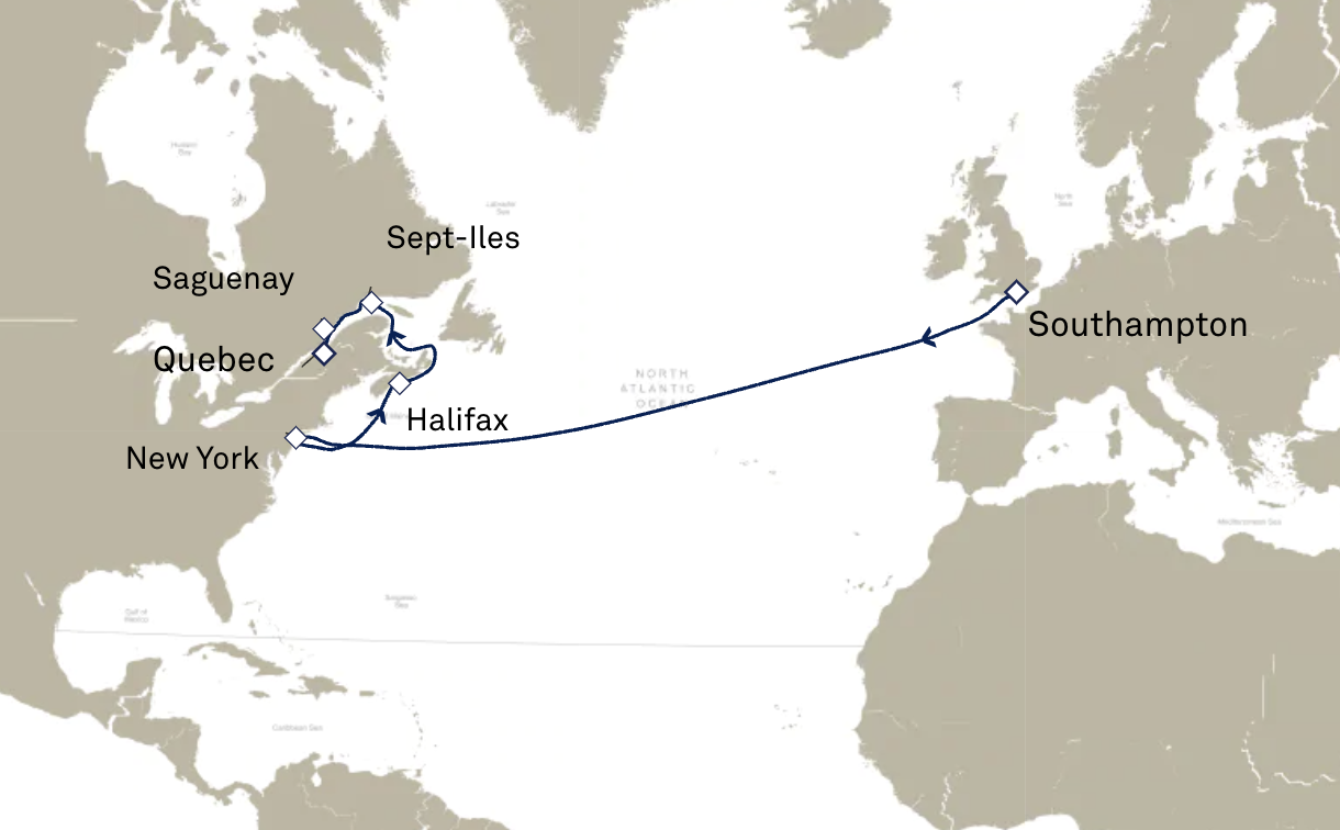 Transatlantique vers la Nouvelle-Angleterre et Canada, à partir de Southampton