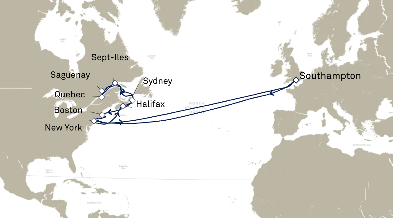 Transatlantique vers la Nouvelle-Angleterre et Canada, à partir de Southampton