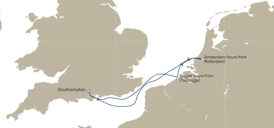 - Les excursions facultatives disponibles à Cherbourg (pour les passagers ayant embarqués au Havre le 8 juin) et à Southampton