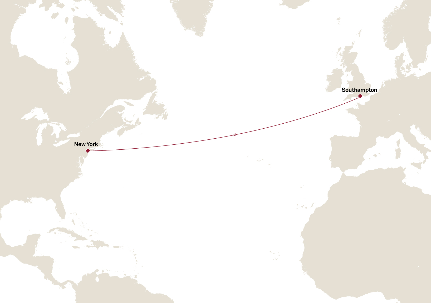 Départ de Southampton à 17h00, embarquement entre 13h00 et 16h00.