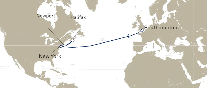 Départ de Southampton à 17h00, embarquement entre 13h00 et 16h00.