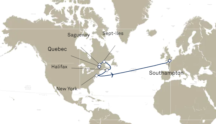 Pour le départ de Cherbourg le 9 juin 2026, réservation en cabine garantie, assignation du n° de cabine à quelques jours du départ.