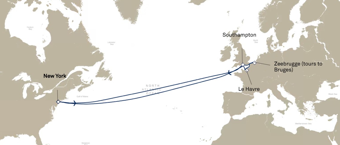 Pour le départ de Cherbourg le 9 juin 2026, réservation en cabine garantie, assignation du n° de cabine à quelques jours du départ.