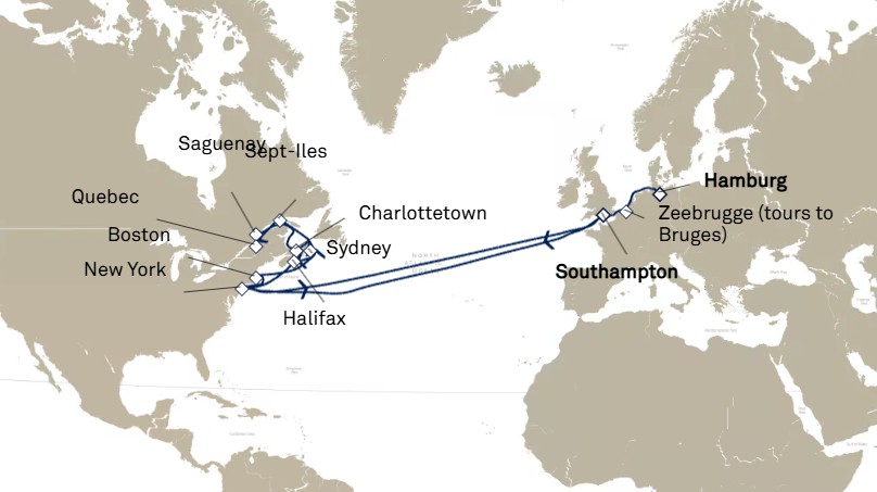 Pour le départ de Cherbourg le 9 juin 2026, réservation en cabine garantie, assignation du n° de cabine à quelques jours du départ.