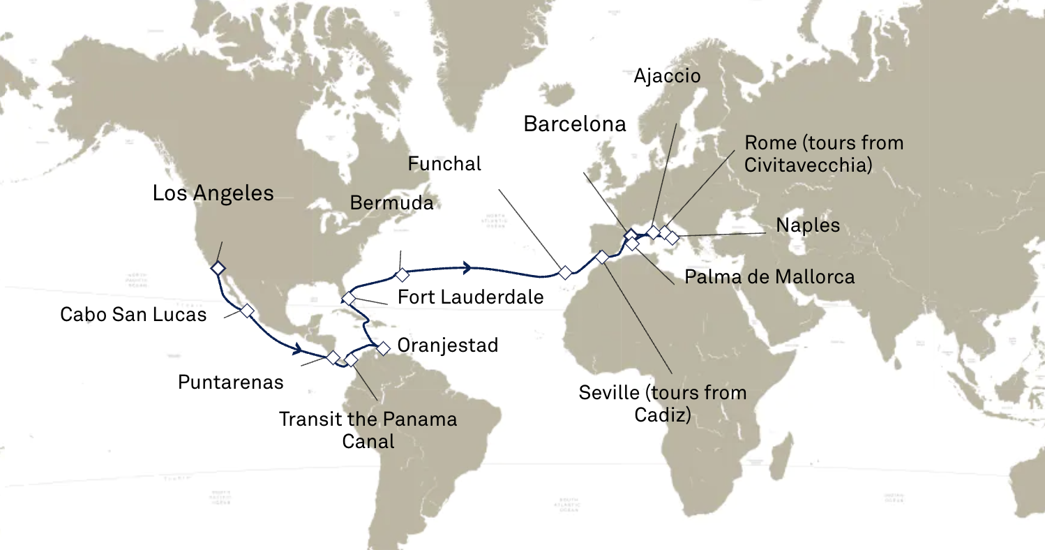 Grand Voyage : Canal de Panama et Méditerranée occidentale, de Los Angeles à Barcelona