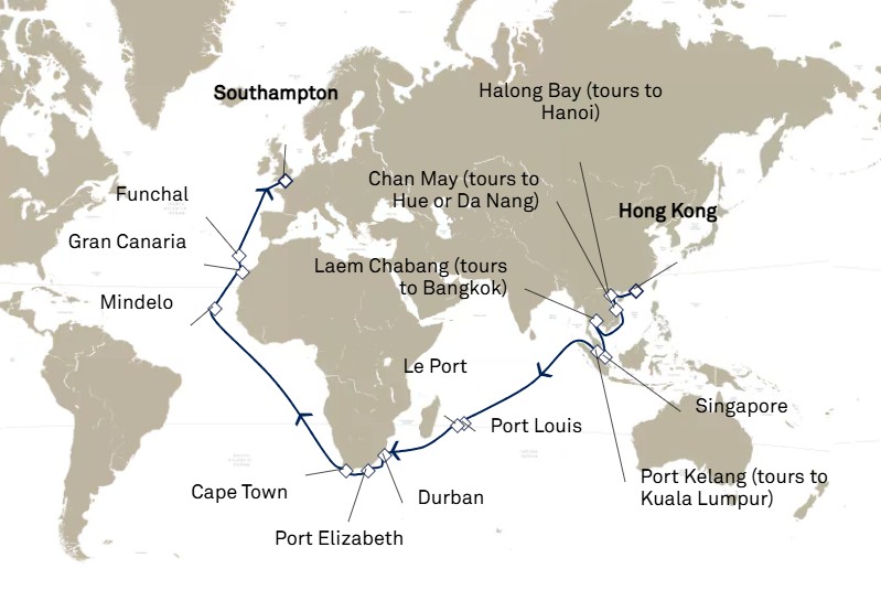 - Les excursions facultatives disponibles à Cherbourg (pour les passagers ayant embarqués au Havre le 8 juin) et à Southampton