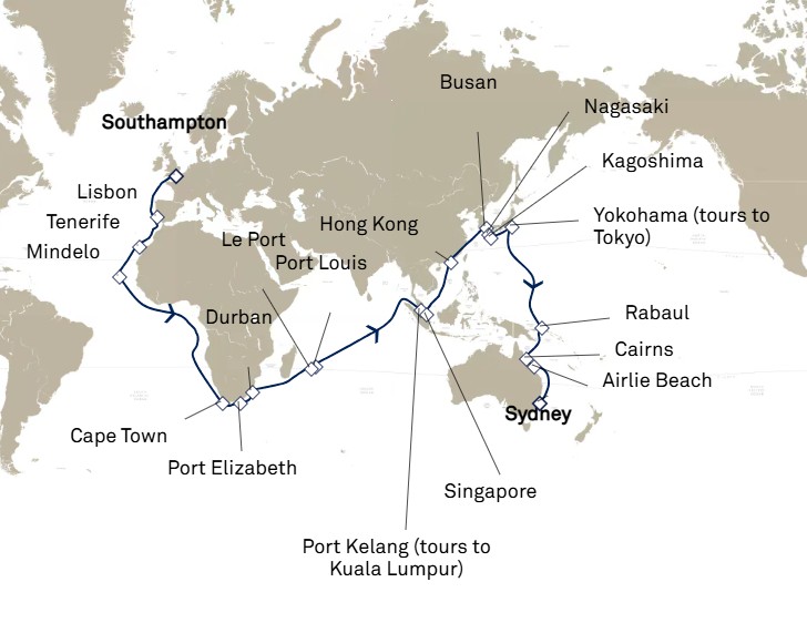 - Les excursions facultatives disponibles à Cherbourg (pour les passagers ayant embarqués au Havre le 8 juin) et à Southampton