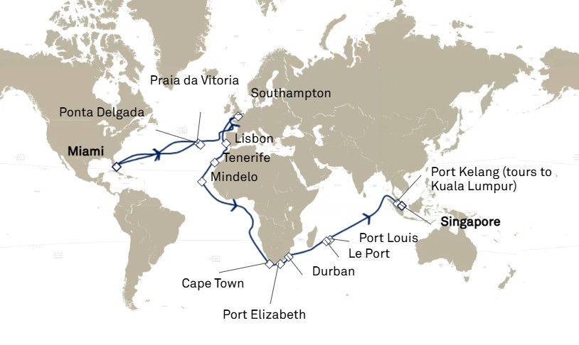 Queen Elizabeth / croisière de 51 jours - 50 nuits / prochain départ : 6 janvier 2028 /