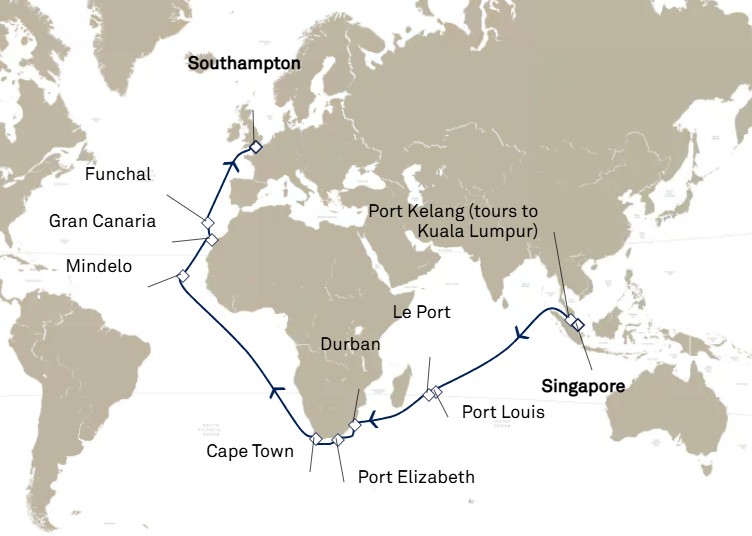 Queen Anne / croisière de 37 jours - 36 nuits / prochain départ : 27 mars 2028 /