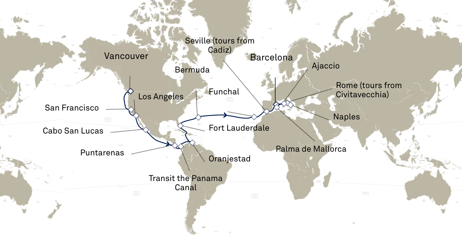 Grand Voyage : Canal de Panama et Méditerranée occidentale, de Vancouver à Barcelona